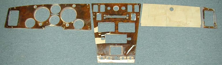 We manufacture 4 of the wood components - the Left Dash Panel, the Clock/Filler Panel, the Radio/Temp Control Panel and the Glove Compartment Panel....BUT, you will need to send us your stock metal Ashtray panel, so that we can re-veneer it to match your new parts. ( or you can buy one of our metal ashtray panels )