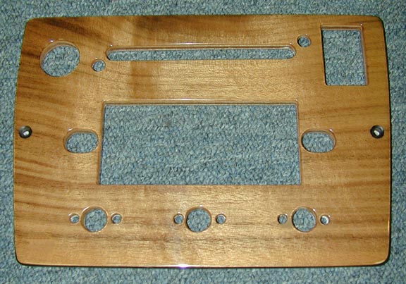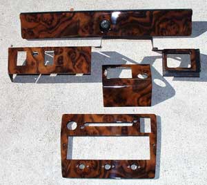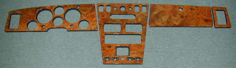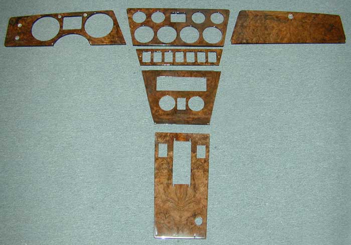 Here is a picture of the OEM Replacement Dashboard set we manufactured for the aforementioned customer.  They chose Carpathain Elm Burl even though the original dash was Burled Walnut.  They also had us change the size of the tempurature control opening to accomodate a VintageAir control module and had us machine the radio cutout to accept a DINN mount radio.  Custom work costs a bit more, but because it is YOUR car, it's worth every penny.