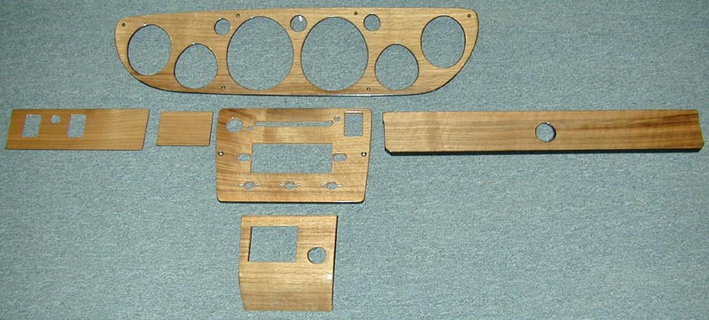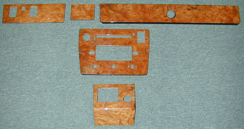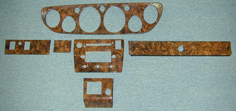 The picture above, is our standard 5pc Jensen Healey Mark II & JH5 set in Burled Walnut.