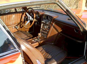 The "orangish-red / rust color" of this stock Jensen GT dash, is very typical of the color that Burled Walnut changes to over the years.  Many people think it was supposed to be that color, but it has just bleached out, faded and changed color over the years.  It was originally medium / dark brown.